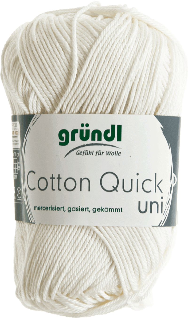 Cotton Quick Uni katoen haakgaren van Grundl is een haakgaren dat bestaat uit 100% katoen. Een bol weegt 50gram en heeft een looplengte van 125 meter. Geschikt voor brei-haaknaalden 3 – 4. Steekverhouding: 22 steken x 30 naalden = 10x10cm. Het katoen is wasbaar op 40 graden. Verkrijgbaar in meerdere verschillende kleuren maar ook in een prachtige color versie. Grundl is één van de topmerken brei- en haakgarens uit Duitsland, kwaliteitsgarens voor een betaalbare prijs.